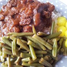 Op de zak staat een handige tip voor een lekker recept met deze bonenschotel namelijk met rijst en spekjes.