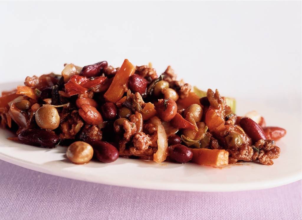 Zo ziet u bijvoorbeeld dat 100 gram zoete aardappel 21 gram koolhydraten 11 gram eiwitten 03 gram vetten 3 gram vezels en 94 kcal bevat. Lijkt mij een heerlijke chili. De bruine bonen toevoegen met een glas water de pimentkorrels laurierblaadjes nootmuskaat maggi blokjes suiker selderij en de verse peper 6.